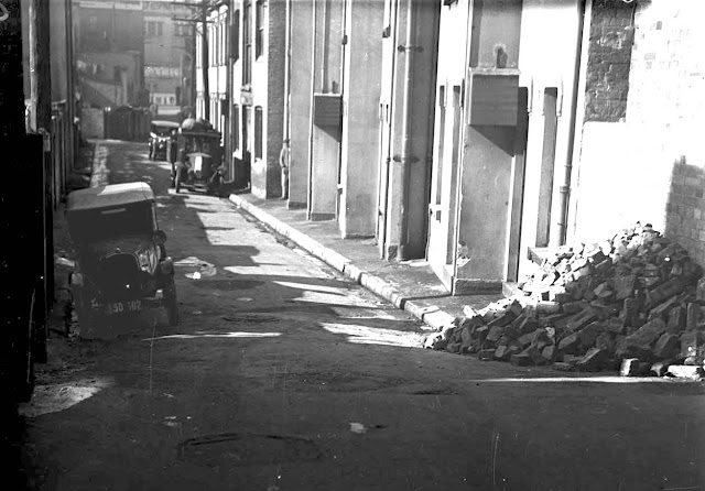 Though Street View doesn't go the full way to the spot where the photo above was taken, the narrow street dog-legs further down, and now obscured by the trees behind is a large abandoned building that used to be West's Olympia Theatre. Those angled terraces on the right are now behind us if you turn around in Street View.